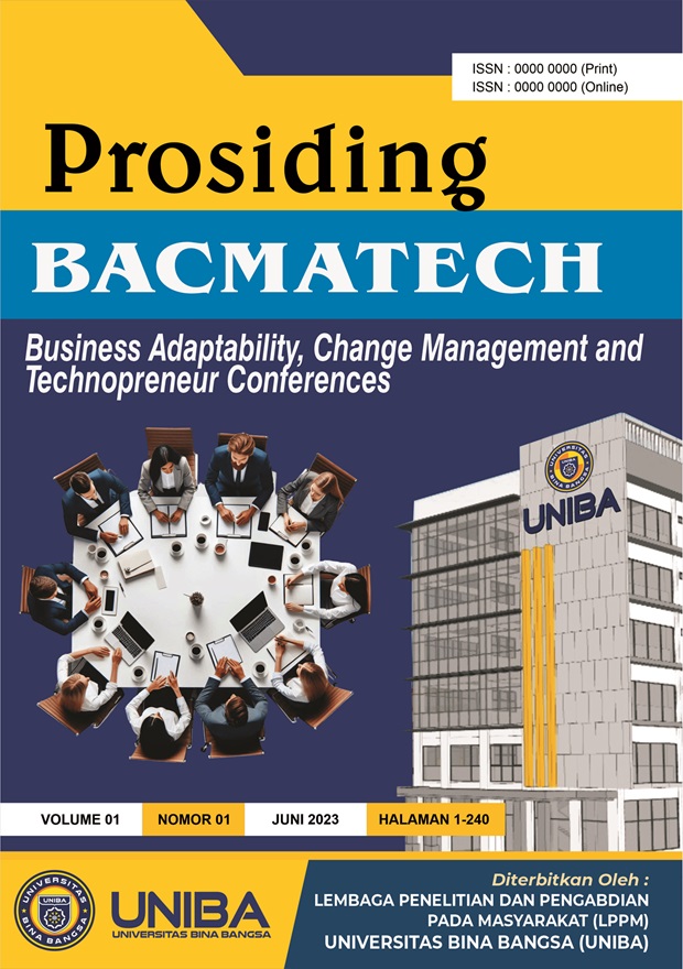 Prosiding Business Adaptability, Change Management and Technopreneur Conferences adalah forum yang didedikasikan untuk pengembangan masyarakat melalui Kegiatan Penelitian. Kegiatan ini menyatukan para Civitas Akademika berbagi pengalaman dan hasil Penelitian mereka yang berkaitan dengan scope. Conferences ini berfungsi sebagai platform untuk menyebarluaskan Hasil Penelitian lebih lanjut.